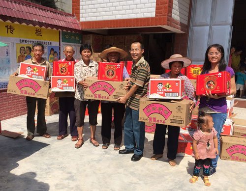 为让帮扶村贫困群众和残疾人过一个欢乐祥和的中秋节佳节,在广州市残疾人福利基金会和市残联“双到”办的积极努力下,9月3日,旺旺集团向省级贫困村--五华县华城镇新兴村贫困户、残疾人、老党员和新兴小学师生共近千人捐赠了食品一批,表达了社会爱心企业和广州市残联对贫困村人民的中秋祝福,受到了帮扶村群众的衷心感谢,村民们连声称道:“现在社会真好”、“感谢共产党”、“感谢残联”。
