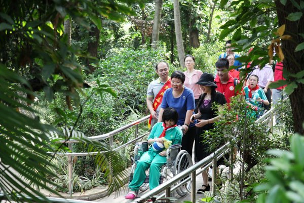 当天活动的主角是广州市残疾人安养院附属学校的近80名孤残儿童。孩子们在黎明副市长等的陪伴下游览了爱心公园,充分体验了爱心公园内完善的无障碍设施。