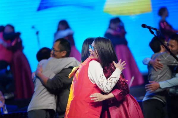 陪伴现场98组爱奇儿家庭一起欣赏了来自天使心爸爸妈妈与友邦天使心志愿者团队组成的天使心合唱团和多位专业歌手、乐手带来的精彩表演。