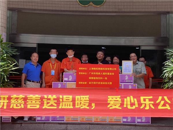 9月10日,旺旺集团上海皓旺网络科技有限公司向广州市残疾人福利基金会捐赠一批植物饮料。上海皓旺网络科技有限公司华南大区总监朱永康和广州市残疾人福利基金会副秘书长古丽等出席了捐赠仪式。