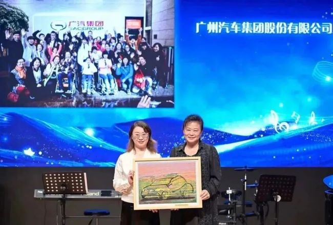 书画艺术家为公益打call。本次音乐会,邀约了广州书画艺术家,分别为一直支持追梦天使艺术团发展的单位送上美好祝愿。国际知名3D地画大师、中国错觉艺术家万氏兄弟(万以琚、万以珩)为广汽集团创作了《追梦前程》,祝愿广州汽车集团股份有限公司以爱随行,奋创万亿广汽新时代。广东广播电视台党委委员、副台长周炜女士向广汽集团品牌公关部副主任张小燕赠送了该画作。