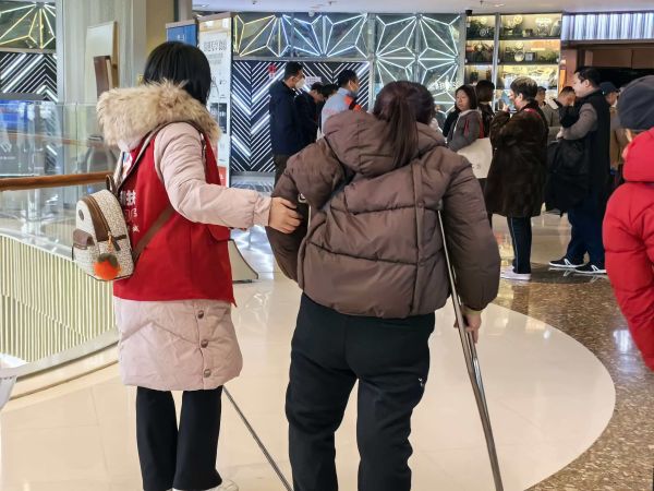 在工作人员和志愿者的帮助和陪伴下,残疾朋友们顺利到达影院,井然有序地观看完整场电影。