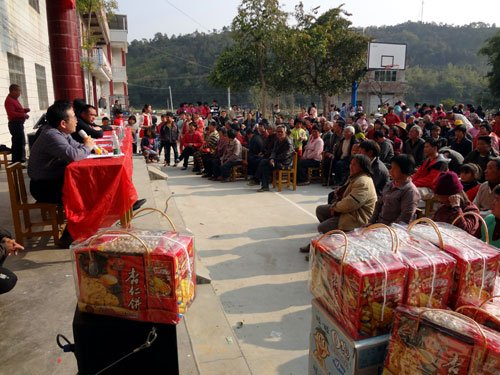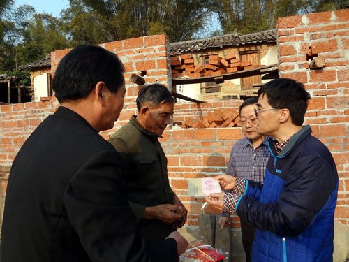 2015年2月10日,广州市残联党组书记、理事长陈学军同志带领机关各处室、各事业单位以及广州市残疾人福利基金会等单位负责同志一行29人,到五华县华城镇新兴村调研双到扶贫工作,慰问贫困户。工作现场会由市残联双到办主任、教育就业处处长彭运安同志主持,五华县扶贫局副局长吉瑞旖、华城镇镇长郑遂方等县镇领导向市残联一行介绍了当地扶贫开发工作情况,对广州市残联双到工作表示充分的肯定和衷心的感谢。会上市残联各帮扶小组对结对的贫困户进行了慰问。