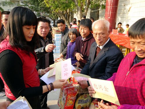 广州康复中心干部向贫困户发放慰问金和慰问品