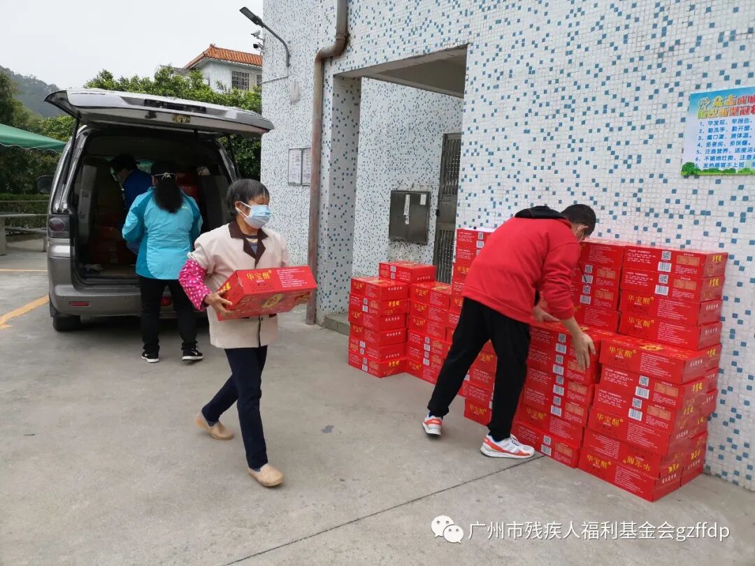 3月12日中午,广东省同心圆慈善基金会工作人员亲自运送捐赠物资到广州市残疾人福利基金会,并帮忙分发100箱到广州市残疾人安养院。